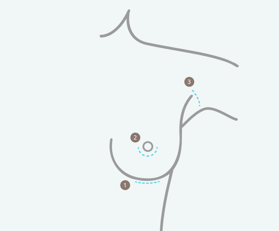 Dies ist der häufigste und sicherste Zugang. Die Narbe liegt gut versteckt in der natürlichen Brustfalte und heilt in der Regel unauffällig.